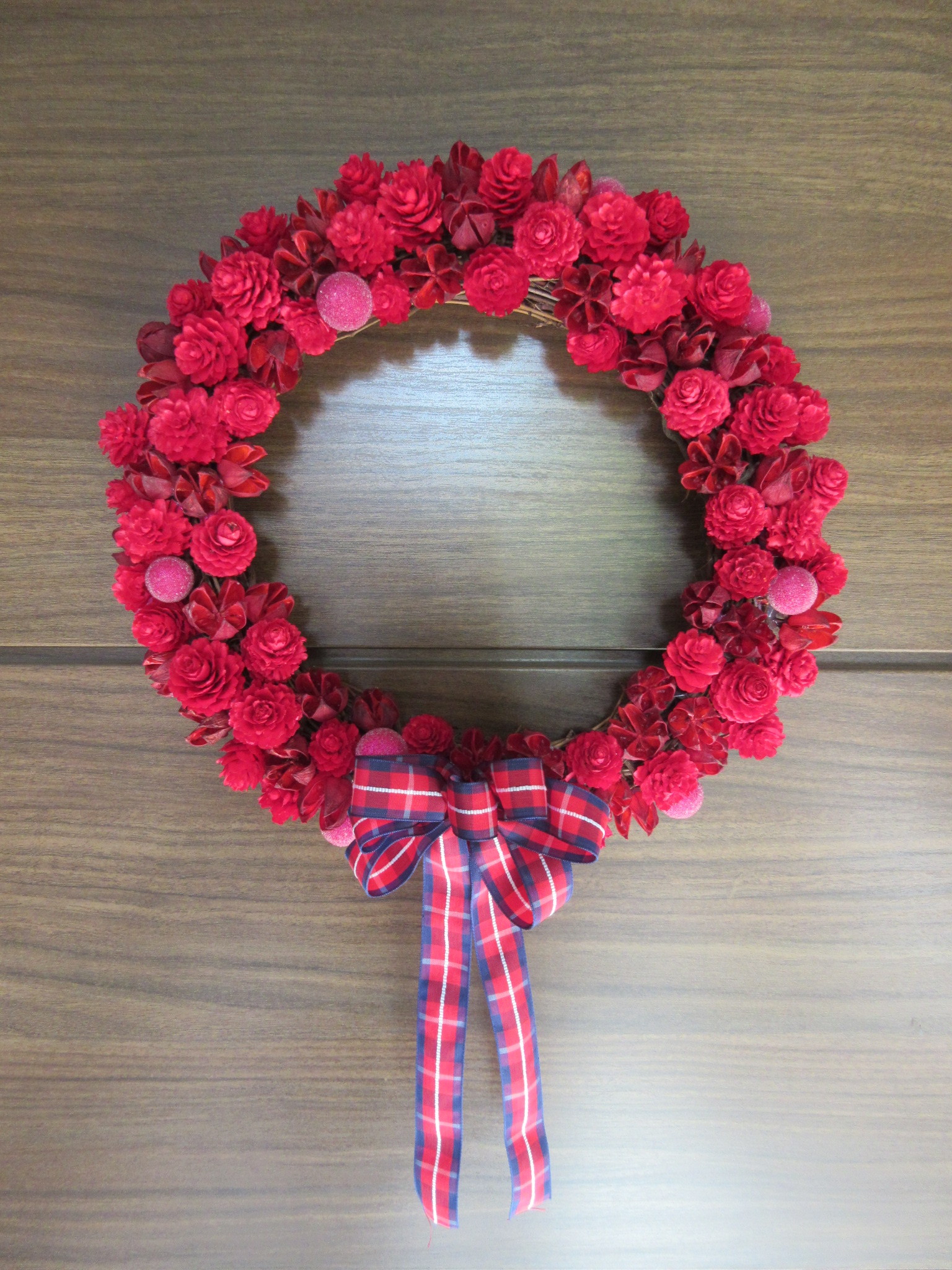 オーナメントの赤いボールを周りに並べると、更にクリスマスの雰囲気が増しますね。