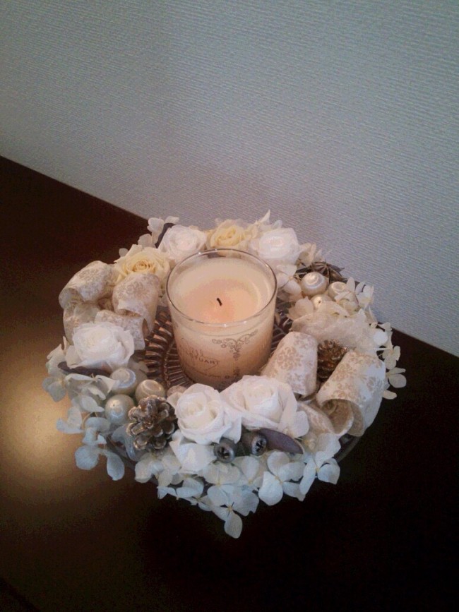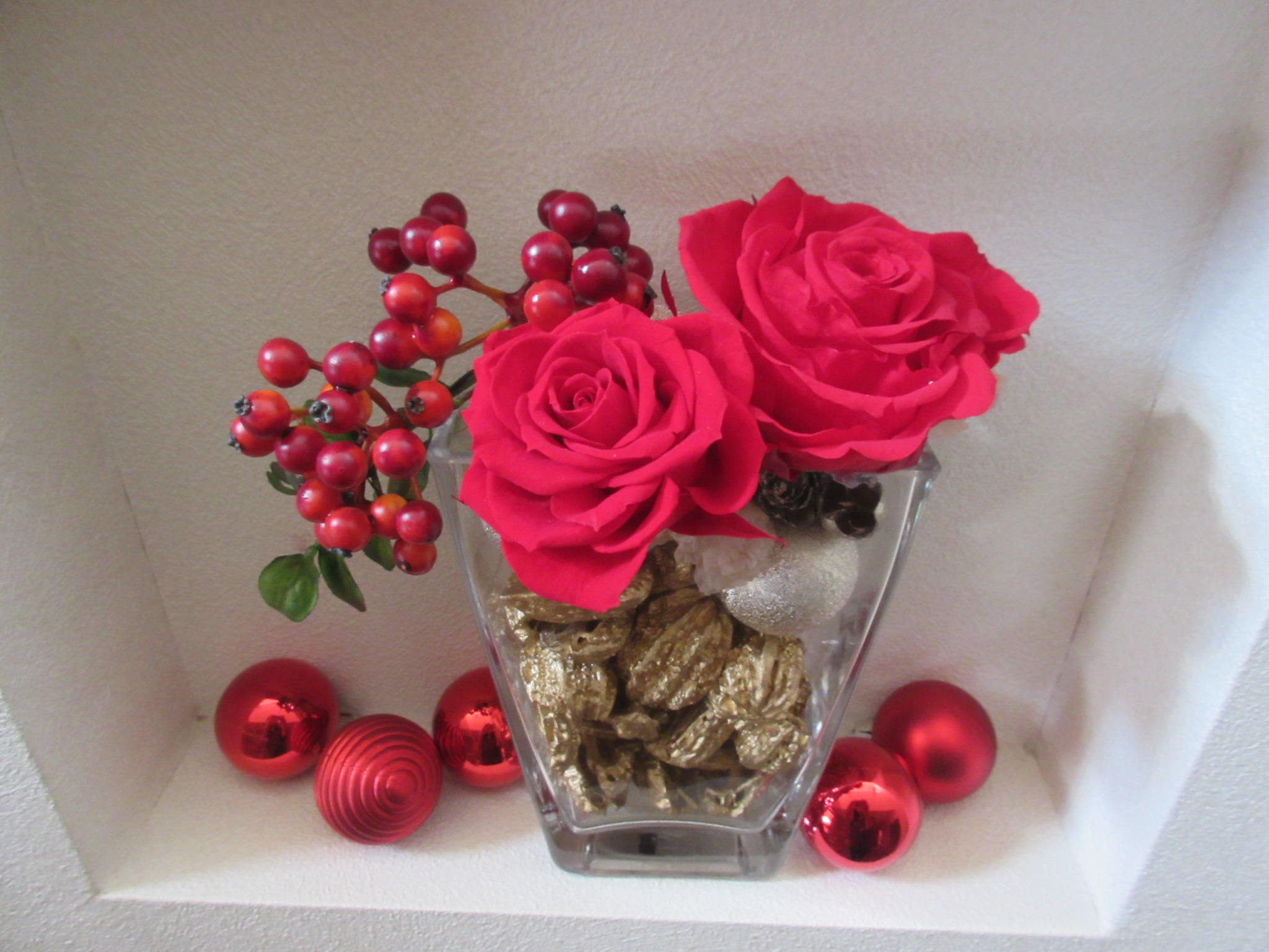 以前作った大輪薔薇もクリスマス風にチェンジ🌹
