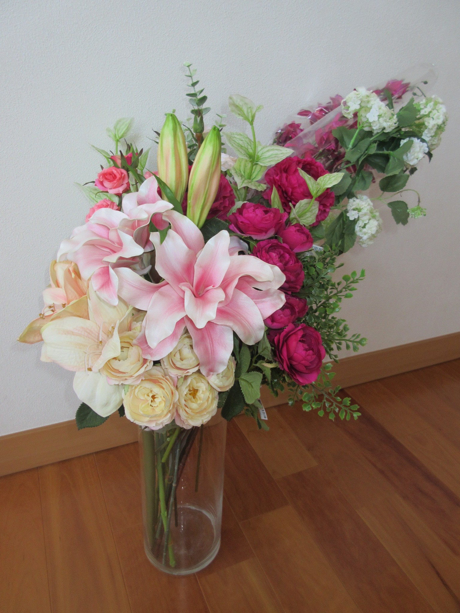 まだタグも付いているし、袋被ったままのお花もあるけれど、こんなボリュームでお花があると嬉しくなっちゃいます。