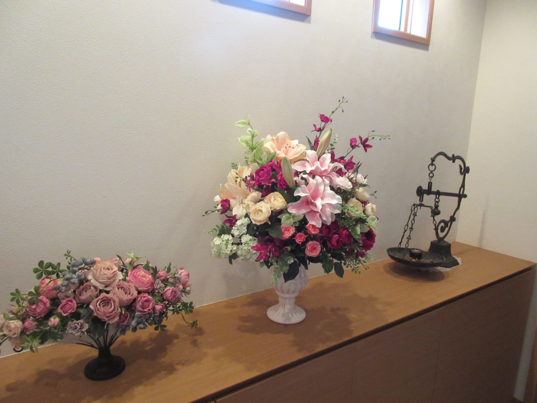 待機中 9月4 注文アレンジがお届け待ち。 作品が大きいから、どこに置いておこうか家の中をウロウロ。結局、一番スペースがあって埃もかぶらない玄関に決定。 置いてみたら我が家の作品じゃないのに、「やだぁ~しっくり収まってる~♡」と、手放すのが惜しくなってしまいました。 名残惜しいので写真だけでもと撮っておきました。