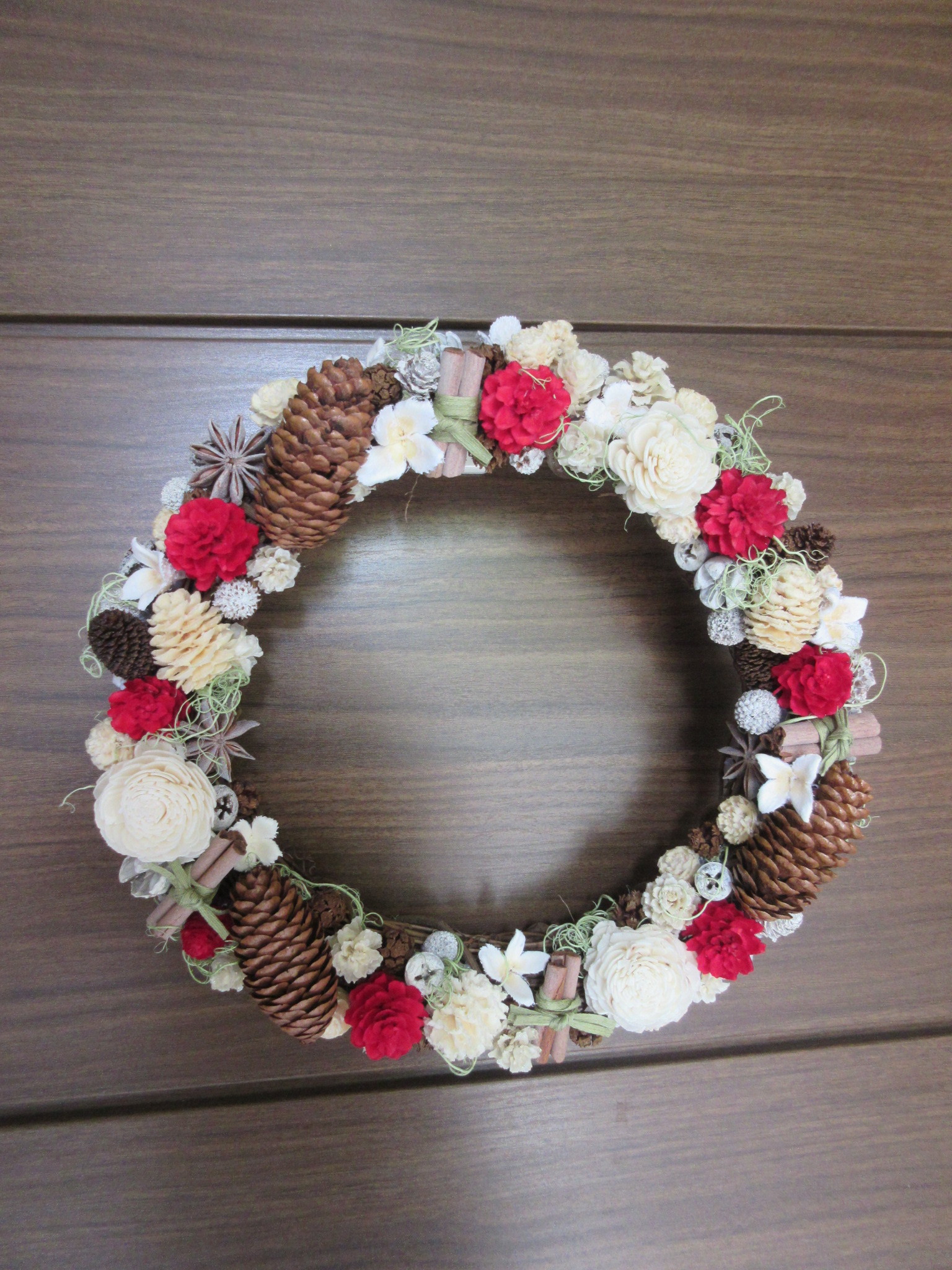 色々なリースを作ってきましたが、真っ赤なリースは初‼ひたすら貼っていく地味な作業ですが、真っ赤ってやっぱり可愛い♥♥